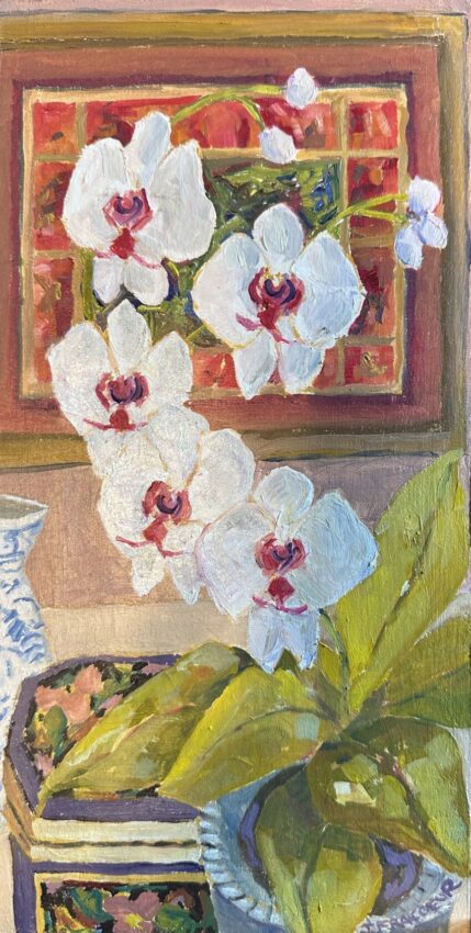 I used a limited palette for this orchid painting and let my drawing lines show through.