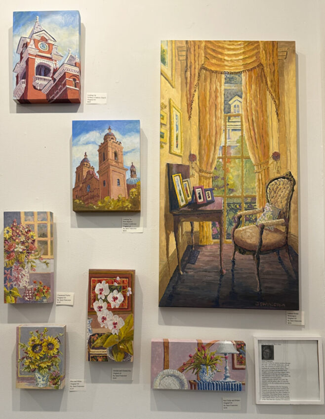 This is my wall at Gallery Citrine in Wilmington. There are several paintings on this wall that were so new when I took them down there that I did not have time to take photos of! I love the chair in the painting above!
