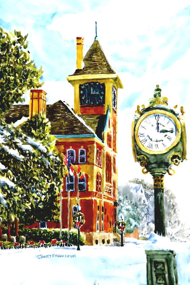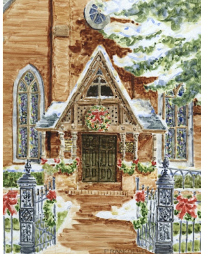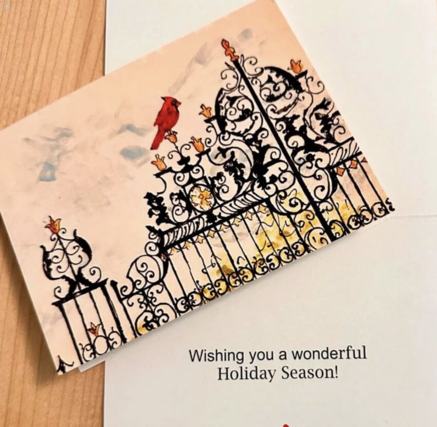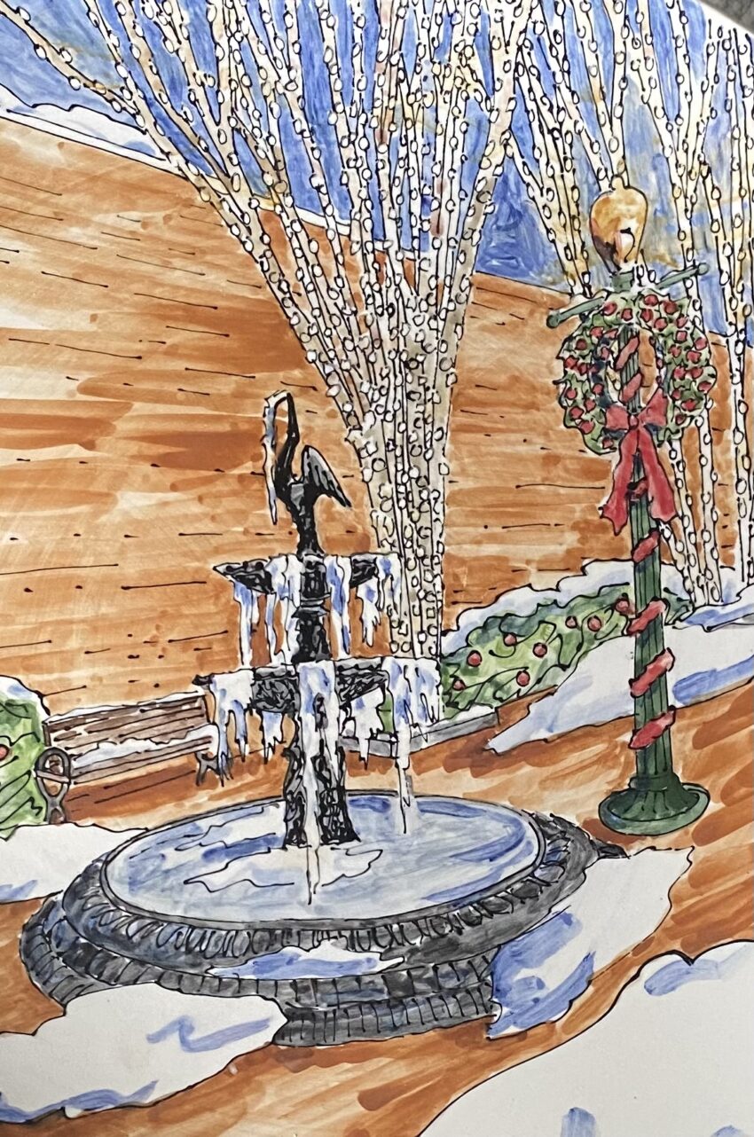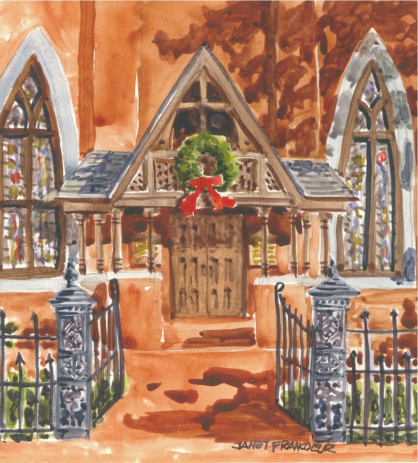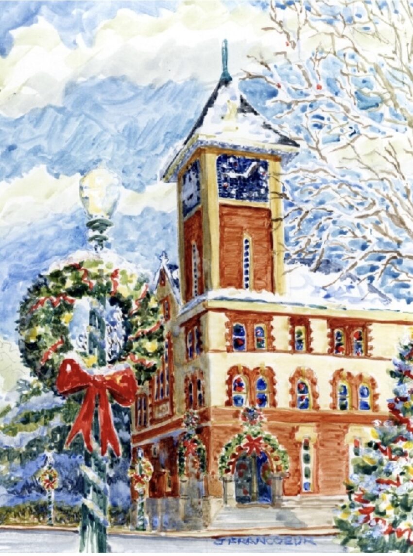 I have been doing New Bern Christmas cards every year since 1990. Here are some of them! I’ve done them with watercolors, ink, underglazes on clay, mixed media, collage, etc! I’m always experimenting and trying new things. Someone suggested I do some with snow…. I think I have!
