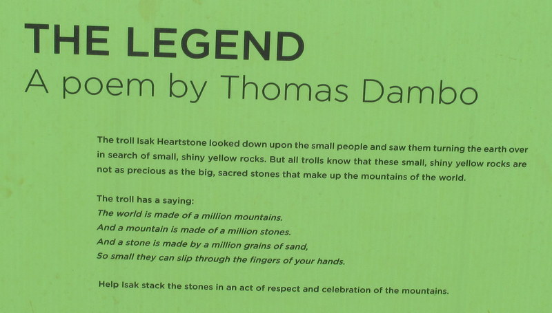 We loved the troll created by Thomas Dambo who is an artist from Copenhagen, Denmark. He made this huge troll out of wood on the spot. Again to see it we had to hike up one of the trails for about a quarter of a mile, it was worth the walk. We climbed over the big pile of stones to get to it, once over the top I slid and sat down. Since I’ve gotten older I haven’t been afraid to ask for help. I stuck my hand out and a young man helped me down the rest of the way.