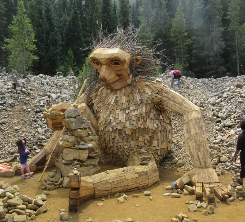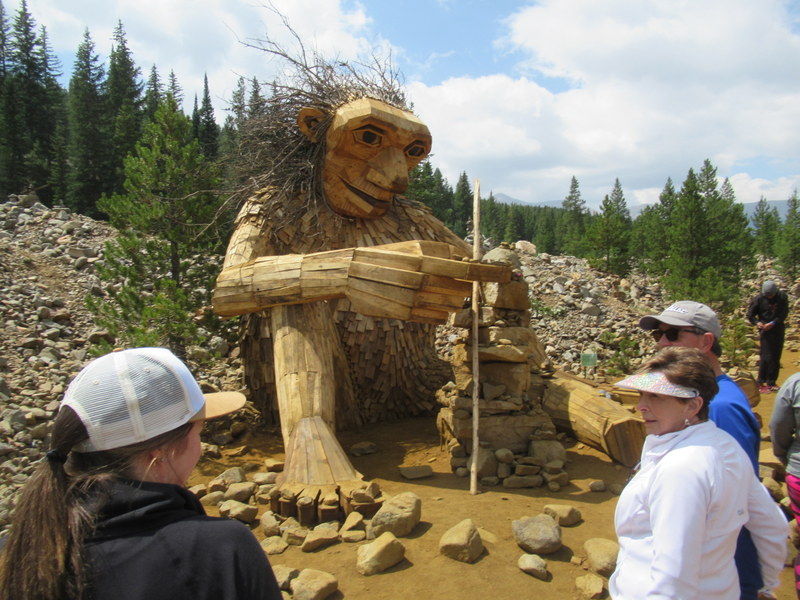 We loved the troll created by Thomas Dambo who is an artist from Copenhagen, Denmark. He made this huge troll out of wood on the spot. Again to see it we had to hike up one of the trails for about a quarter of a mile, it was worth the walk. We climbed over the big pile of stones to get to it, once over the top I slid and sat down. Since I’ve gotten older I haven’t been afraid to ask for help. I stuck my hand out and a young man helped me down the rest of the way.