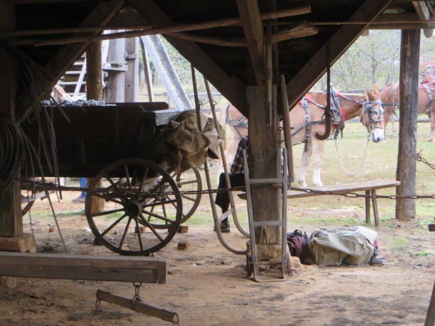 Underneath the cotton gin.