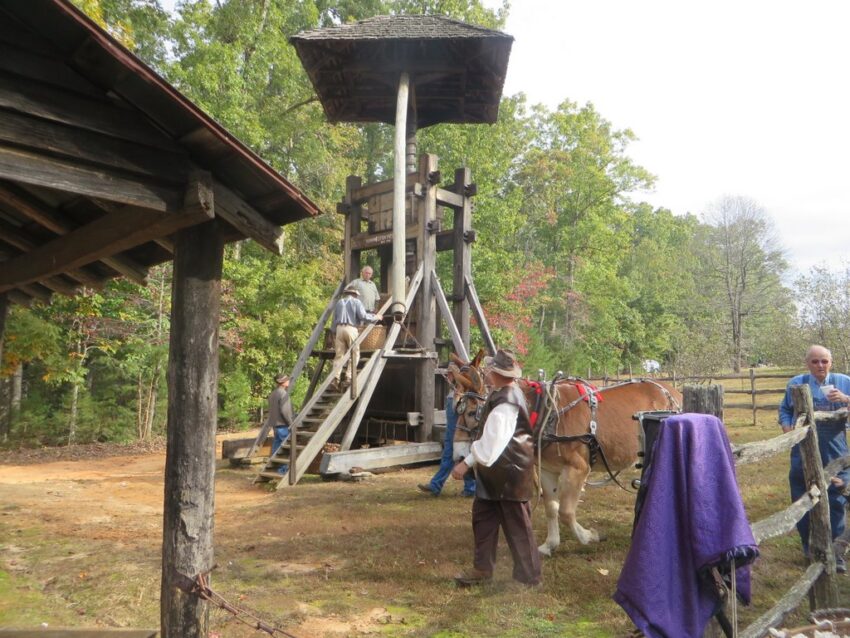 Inside the cotton gin.
