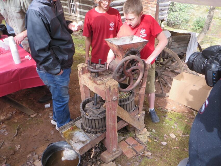 Grinding apples.