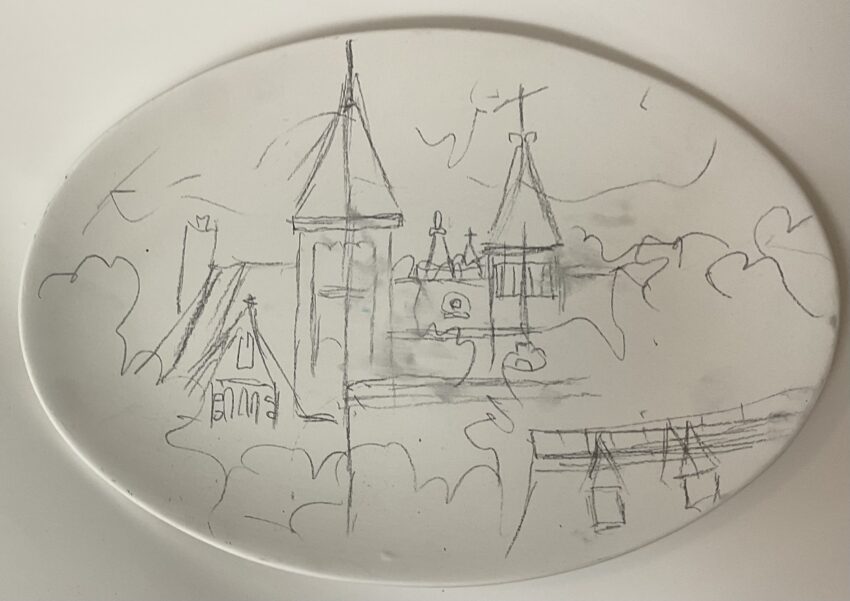 I usually sketch out the main part of the image, how much detail I use in that pencil sketch depends on how realistic that item is. Or if I’m writing and the passage is long, I want to be sure it’s going to fit, do I write bigger or smaller? My favorite pencil is Blackwing. The pencil is made of graphite and contains no wax so it doesn’t cause my glaze line to skip. My second favorite is a Bic mechanical pencil.