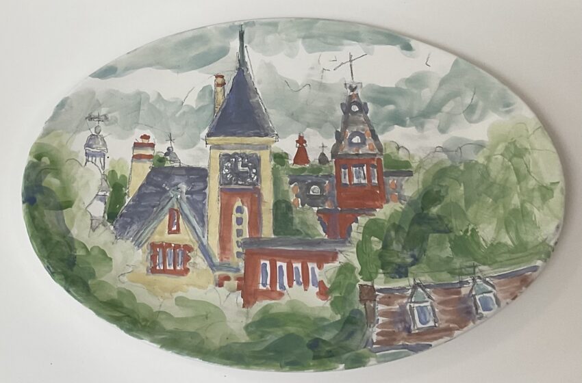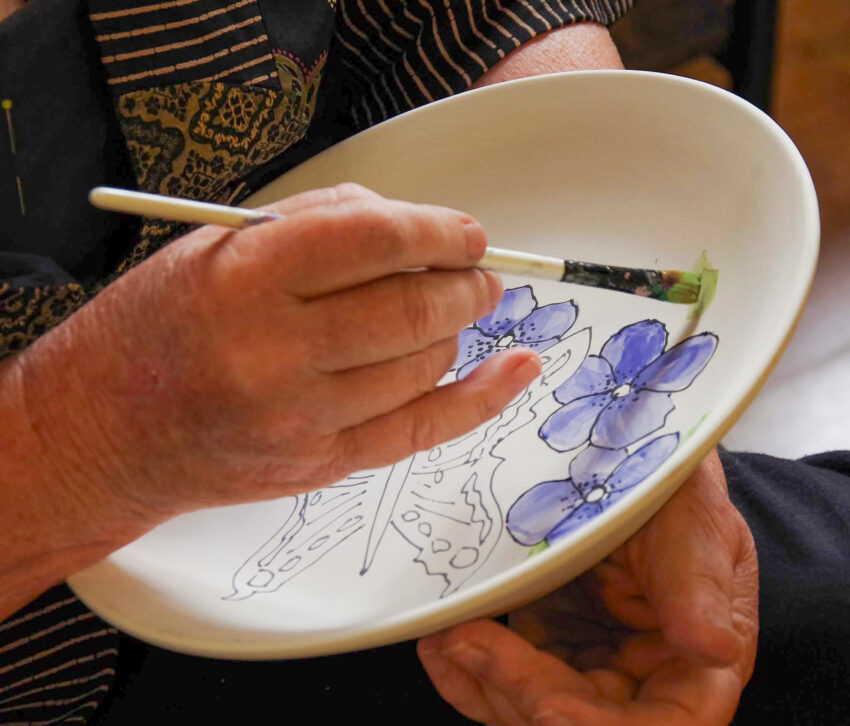 I use my underglazes like watercolors, in a transparent way. I’ve used line in some of my work since the beginning, 50 years ago (how can that be?).