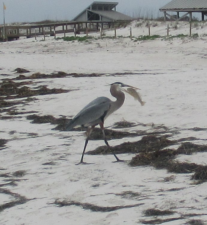 Lucky shot, a fisherman tossed this fish to the heron and I snapped this just before he swallowed it in one gulp on St George Beach.