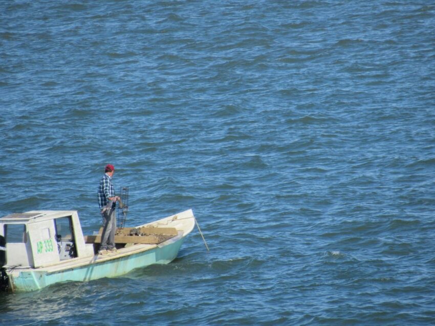We sat on the bridge to St George Island and it was so interesting to watch this oysterman (these fishermen are called tongers) use tongs to harvest the oysters, as they have for centuries. They can fish this way because the bay is just a few feet deep.