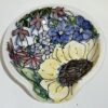 Brighten your countertop with this hand-painted ceramic spoon rest, bursting with a cheerful sunflower-style bloom and colorful garden flowers.